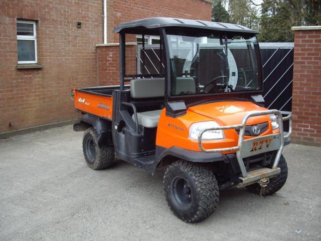 Excellent 2007 Kubota RTV 900 - 3 cylinder diesel with power steering and only 1862 hours done, Much Safer and far more useful than a Quad - it has hydraulic rear tipping body with auxillary hydraulic outlets, 3 speed and reverse with one pedal drive (same as torque on digger / tractor), windshield and roof, carry up to 3 people with seat belts, Diesel engine. It has to been seen to be appreciated but if you are thinking of buying a Quad, consider this first! Price includes VAT. Fully serviced and ready to go. Call Tom more details Tel 062 46813 086 2575371 www. tomlane4x4. ie